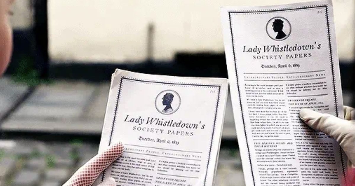 Uma incógnita para todos, essa é a principal fonte de todas as fofocas e suas palavras podem influenciar as opiniões das pessoas sobre os acontecimentos sociais atuais. Todas as manhãs jornais falando sobre a alta sociedade é entregue a todos é quase impossível guarda um segredo da pessoa que se intitula Lady Whistledown por isso sejam discretos e escondam bem seus segredinhos.